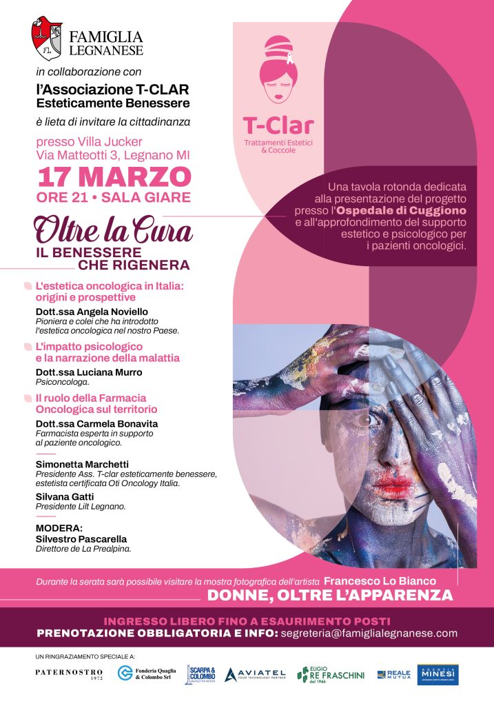 Durante la serata avremo il piacere di presentare il progetto, attivo dal 2023 presso l’Ospedale di Cuggiono, che valorizza l’importanza del supporto estetico e psicologico per i pazienti oncologici. Uno sguardo nuovo e un’iniziativa concreta nata per restituire dignità e sollievo alla persona attraverso linee guida certificate.