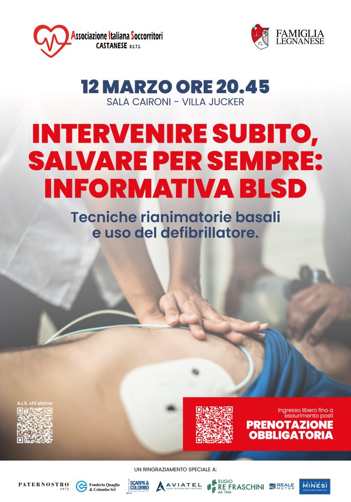 Giovedì 12 marzo alle 20:45 ospiteremo una serata di informazione e formazione, in collaborazione con l’Associazione Italiana Soccorritori Castanese, dedicata alle tecniche rianimatorie basali e all’uso del defibrillatore in situazioni d’emergenza.