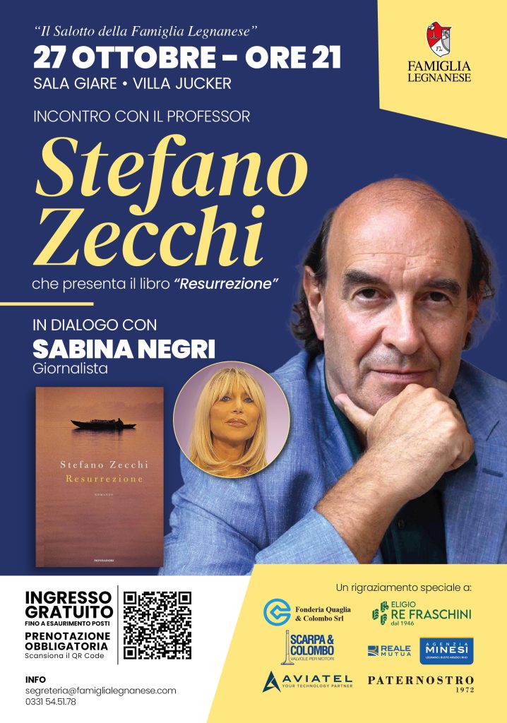 Lunedì 27 ottobre alle ore 21 torna ad aprirsi Il Salotto della Famiglia Legnanese presso la Sala Giare di Villa Jucker. Protagonista della serata sarà il professor Stefano Zecchi – scrittore, filosofo, opinionista, ex professore di estetica presso l’Università degli Studi di Milano – in dialogo vivace con Sabina Negri – drammaturga e giornalista – che lo accompagnerà in modo ironico e incalzante a parlarci di bellezza nelle sue diverse accezioni, di amore nelle sue sfumature, di filosofia, arte e ricerca interiore. Riflessioni suggerite anche dalle vicende narrate in “Resurrezione”, l’ultimo libro di Zecchi, edito da Mondadori, i cui protagonisti cercano inconsapevolmente il senso delle loro vite durante un viaggio in India che in modo affascinante e inaspettato, attraverso le loro passioni, li condurrà anche dentro sé stessi e al loro destino.