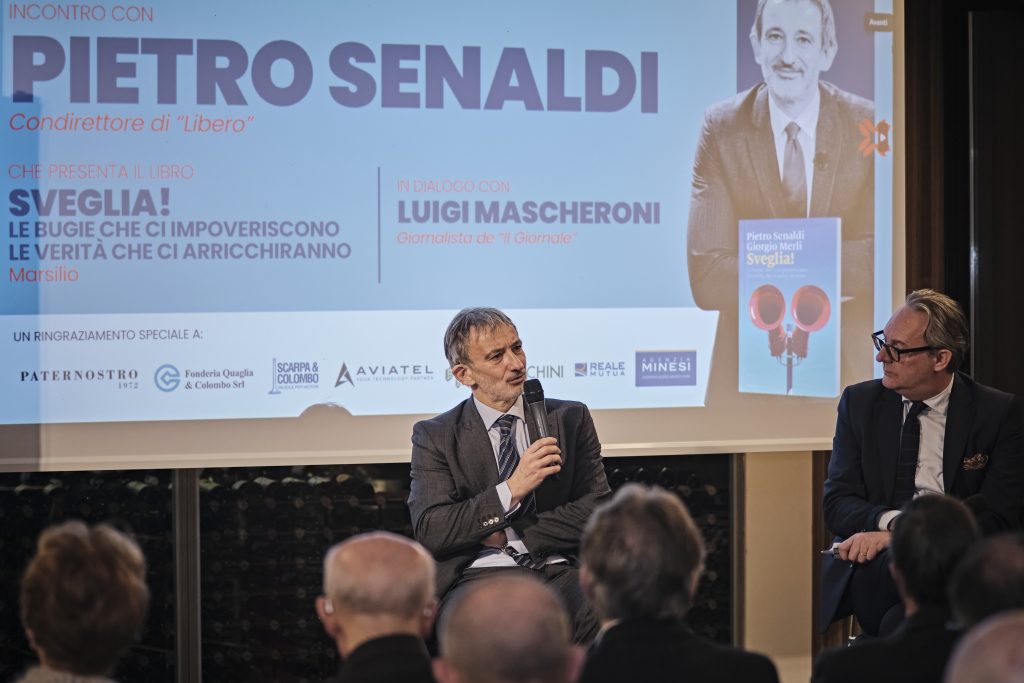 Il libro di Senaldi parte quindi dai dati e dall’analisi della situazione socioeconomica dell’Italia, e attraverso una ricostruzione storica punta a capire quali sono i falsi miti da sfatare e i luoghi comuni per proporre soluzioni possibili affinché il Paese possa riprendere la sua corsa. I temi caldi affrontati sono stati quelli del debito pubblico, degli stipendi, della tassazione, della sanità e dell’immigrazione senza tralasciare le Olimpiadi Milano-Cortina, considerate un’opportunità per riflettere su come l’Italia debba fare sistema e andare oltre il grande evento e tornare ad essere un Paese in grado di attrarre turismo puntando su arte e natura in maniera innovativa. Anche l’Unione Europea è stata al centro della riflessione di Senaldi: “l’Ue è stata fondamentale grazie all’Euro – ha sottolineato – perché il nostro debito pubblico era diventato insostenibile per la lira. Vero è che il cambio ha messo fuori gioco molte imprese già in crisi e ci siamo trovati accanto a Paesi molto più forti come Francia e Germania. Oggi le cose sono cambiate, questi due paesi sono in crisi economica, politica e istituzionale”. Senaldi si è quindi soffermato sull’imbarbarimento del dibattito politico in Italia, caratterizzato ormai da uno scontro violento e ideologico, anche in televisione, fra Destra e Sinistra: “Questo è uno strumento voluto per anestetizzare il pubblico che impedisce di affrontare veramente i problemi, un gioco al ribasso usato consapevolmente dai politici per arrivare a una polarizzazione estrema. Lo si vede nel dibattito per il Referendum sulla riforma della giustizia. Ciò che lascia perplessi è che si andrà a votare non tanto per la riforma ma quanto per esprimersi pro o contro questo governo”. Fin qui le analisi dei problemi, ma quali sono le ricette proposte da Senaldi? Il giornalista propone tre soluzioni, tre strade possibili da intraprendere: la prima è quella di tornare a far crescere il PIL. “La ricchezza non va demonizzata ma prodotta, il PIL non è un fenomeno meteorologico. Ripartiamo dalle potenzialità turistiche del nostro Paese facendo sistema”. La seconda è attrarre le medie e grandi imprese creando un sistema fiscale adeguato perché occorrono investimenti importanti per sviluppare tecnologia, Intelligenza Artificiale e digitalizzazione. Infine, puntare sui servizi e soprattutto sui servizi su misura. Tanti spunti per riflettere e per cambiare rotta.